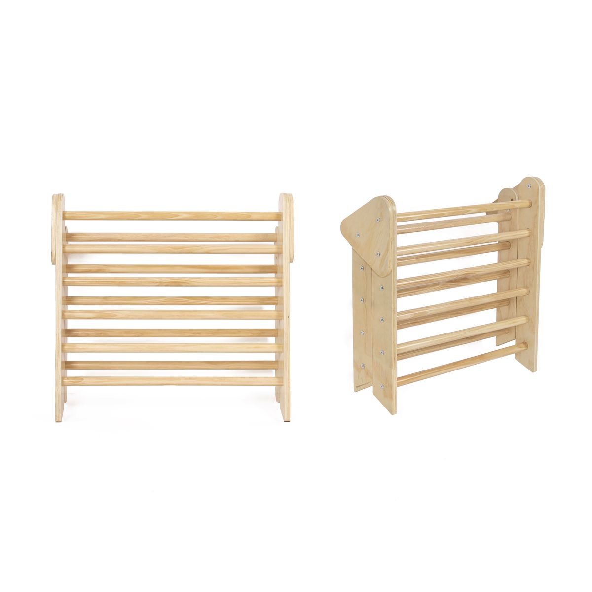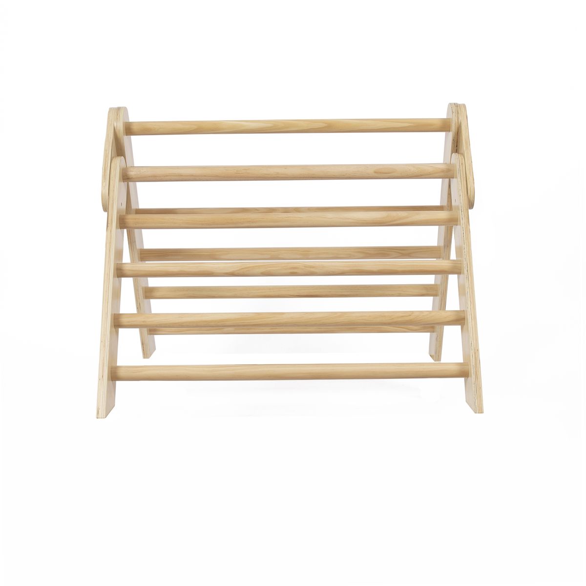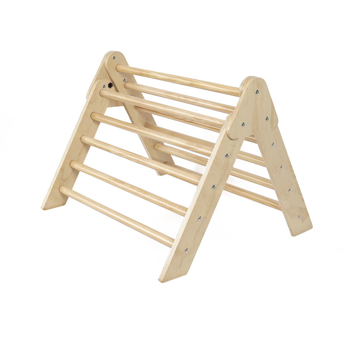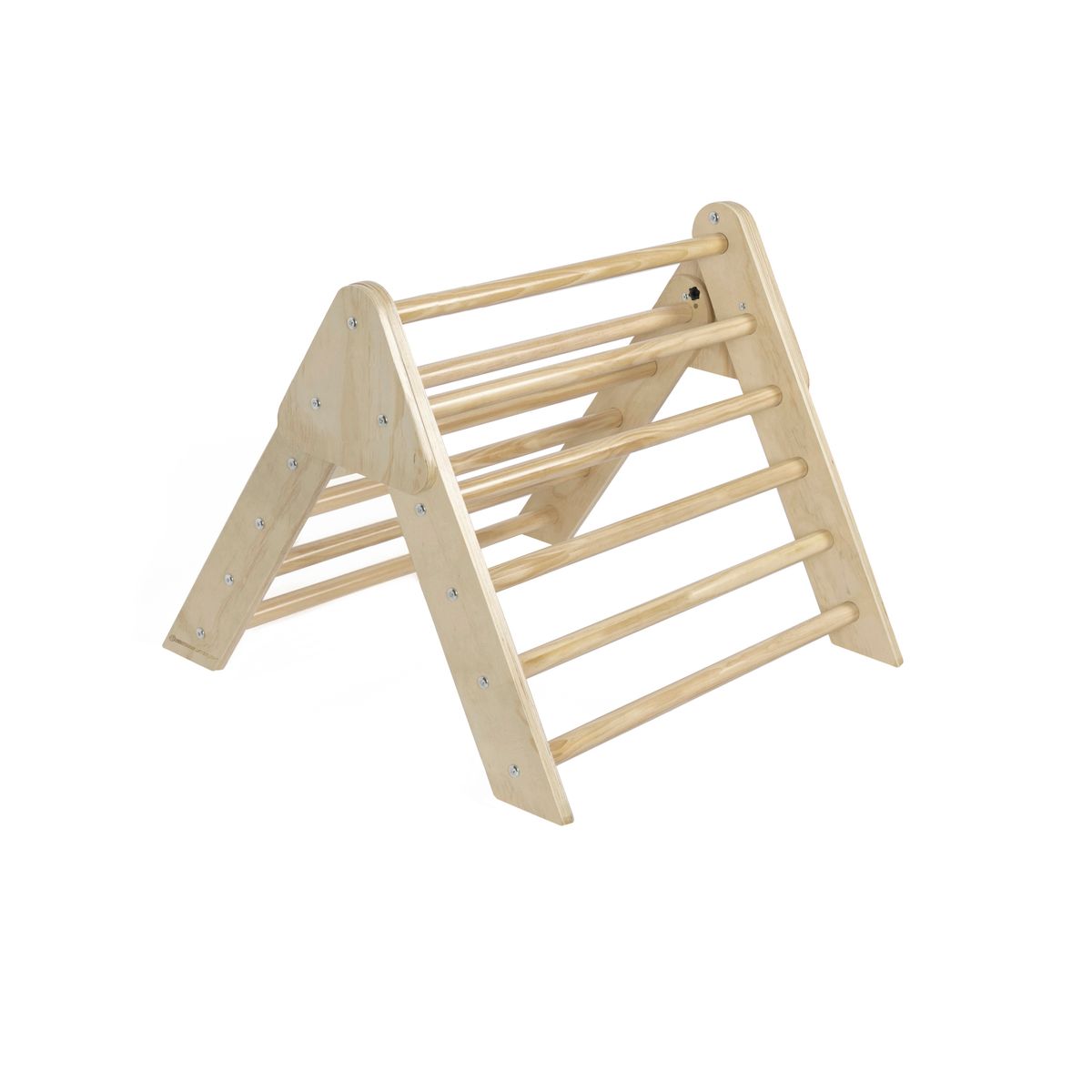 Il nostro triangolo di arrampicata trasforma la stanza dei bambini in un emozionante parco giochi al coperto. Questo è un grande vantaggio per il parco giochi, soprattutto durante i mesi invernali. Anche i più piccoli amano aggrapparsi per mettersi in piedi, oppure con una coperta gettata sopra, ricreare un'accogliente tana. I bambini più grandi preferiscono usare il triangolo per arrampicarsi. Gli scalatori esperti potranno usarlo non solo per arrampicarsi, ma anche per risalire a testa in giù. Il triangolo da scalare favorisce in particolare il gioco libero. I bambini possono esplorare le possibilità del dispositivo e le proprie capacità al proprio ritmo. Inoltre, il triangolo ispira i bambini a combinarlo con altri materiali, ad esempio intrecciando stoffa attraverso i pioli, posizionando figure di gioco all'interno o facendo salire animali imbalsamati in cima. Il triangolo da scalare è anche incredibilmente sostenibile: infatti, i bambini dai 10 mesi ai 6 anni circa si divertono. Naturalmente, il triangolo da scalare potrà essere allestito anche in giardino durante i bei mesi estivi. Quindi i piccoli naturalisti avranno un posto di osservazione perfetto. Con il materiale aggiuntivo adatto, ad esempio si potrà costruire uno scivolo in un batter d'occhio. Vedrai quanto velocemente tuo figlio impara i trucchi con il triangolo da scalare e quanto tempo trascorre con movimento, immaginazione e gioia.